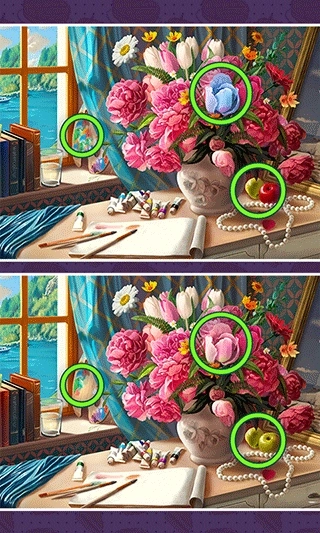 3、操作简单,轻松休闲,有效锻炼眼力和反应力!2、各种道具能帮你更迅速地发现差异,从而更快地完成任务,获取更多奖励;