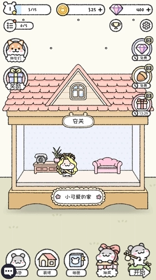 4、通过游戏后悔获得星星奖励,可以给小仓鼠的家进行装修