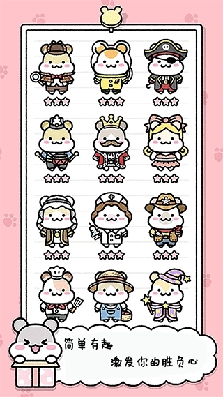 这是一款模拟手机饲养宠物的游戏,游戏简单有趣,画面风格Q版可爱,无需联网即可游玩。游戏开始时,玩家可以免费领养一只可爱的小仓鼠并照顾它。通过参与关卡挑战,给可爱的小仓鼠分发糖果,可以获得奖励,用这些奖励装饰小仓鼠的家,让它变得更加漂亮。这种简单又有趣的游戏方式能够激发你的胜负欲。通过抽奖或完成任务,我们还能获得其他种类的小仓鼠。收集齐全所有小仓鼠,挑选更加可爱的一只,保证你会感到萌化心,快来和小仓鼠一起玩耍吧!还有机会获得甜蜜的奖励哦!