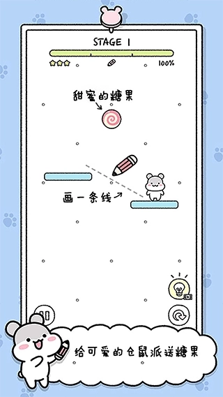 3、通过划线使掉落的糖果能够直接落入小仓鼠