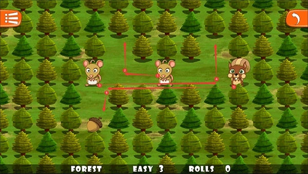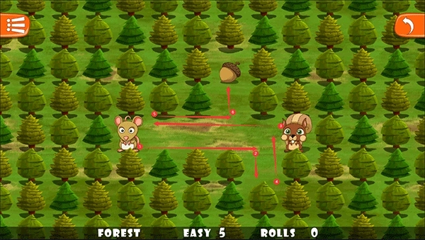 第二关:老鼠右-上,松鼠上-左,三星通关。