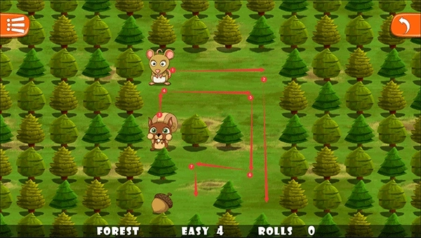 第四关:老鼠右-下,松鼠上-右-下-左-下,即可三星。