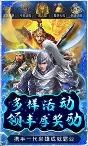 1、驾驭自己喜爱的三国武将,各种养成系统使你的武将如虎添翼,战无不胜。;
