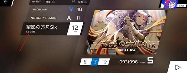 4、然后选择【望影の方舟six】这首歌,任意难度。