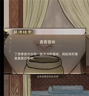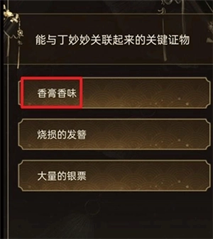 20、之后在房间当中还可以得到丁渺渺房间香膏的气息这个线索,之后开始进行推理丁渺渺的嫌疑,如图进行放置。