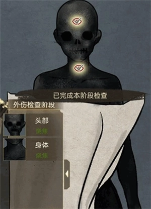 1、首先看到尸体之后,进行验尸报告如图将尸体上面报告进行填充,在准备查看七窍的时候突然有人闯进来。