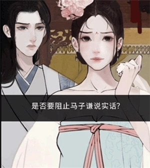 9、这个时候马兄回来之后可以得到从将军府到梅花坊的时间线索,在这个时候就可以进行选择是否阻止马子谦说实话。选择阻止,之后马子谦就会退出房间当中。