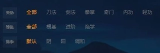 *排序:默认不显示内息。若选择“阴”则会将所筛选出的武学中“阴”由极到弱进行排序,其他内息属性同理。