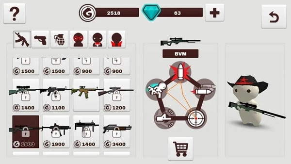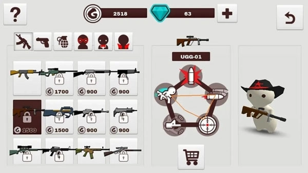 3、武器选择,提供了大量的武器装备资源,通过装备各种武器,还能提升战斗能力。
