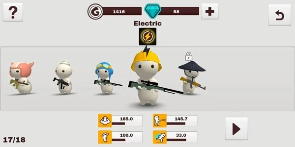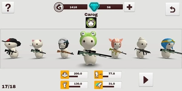 1、角色选择,根据玩家的个人玩法喜好等,还能够在这里选择合适的角色等进行玩耍。