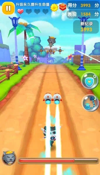 为了不让灰太狼抓住,喜羊羊也是蛮拼的,但就算再拼,凭借自己单薄的力量还是抵不过灰太狼的追捕,这时除了需要我们的帮助之外,道具环境当然也是重中之重,有爱且实用的道具,沿路上会不断出现,喜羊羊靠吃到它们实现无敌模式、疯狂吸金币等超级形态,在系统商店中,我们同样可以购买到这些道具。