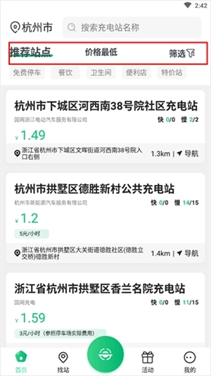 2、如果不知道哪里有站点,那么可以根据条件进行筛选,例如价格最低、距离最近等等;
