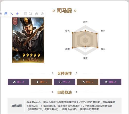 便宜而且百搭,魏国武将核心,魏国必出场武将,全游戏最高6围,没有明显短板。