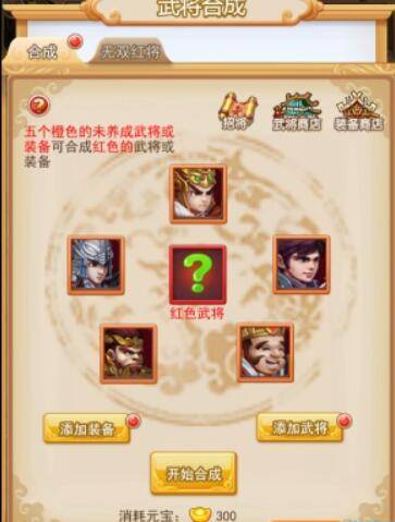 当您成功通关至第45关,武将合成功能便会开启。在此功能中,五个橙色武将能够合成为一个红色武将。但务必留意,用于合成的武将必须是从未养成过的。要是您的橙色武将已在您的上阵阵容中,那您得先将其从阵中撤下,接着进行武将重生操作。
