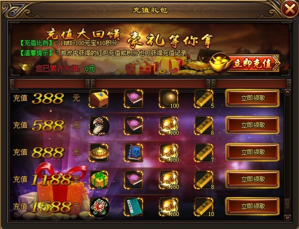 2、元宝是本服唯一通用流动货币,充值比例1:100不议价。