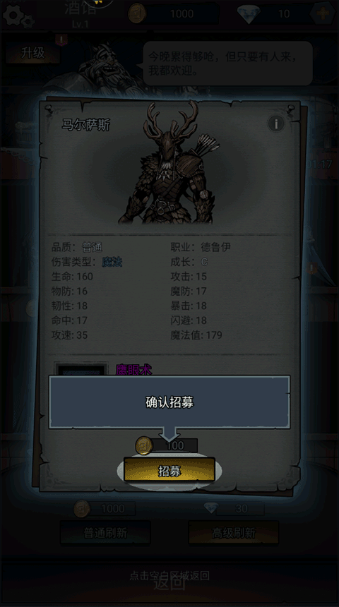 4、接着,在酒馆中招募英雄,点击这位英雄;