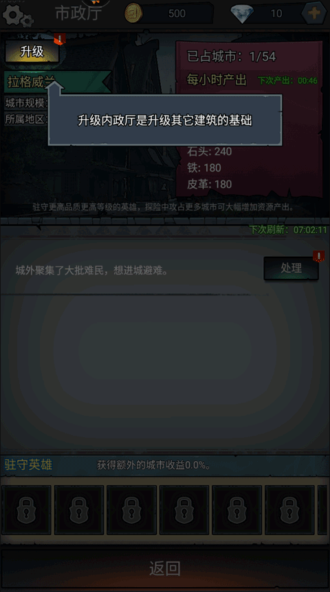 4、接着,在城内找到并点击“升级内政厅”按钮选项;
