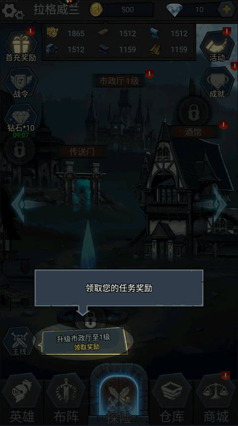 7、现在,就可以在主城点击高亮处获得任务奖励了。