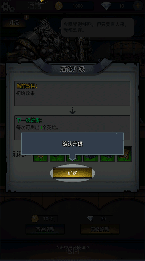 3、在酒馆升级确定界面找到并点击“确定”按钮选项;