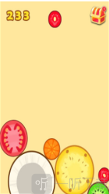 2. 各类不同水果依次下落,把相同的水果进行合并,从而得到更大的水果。