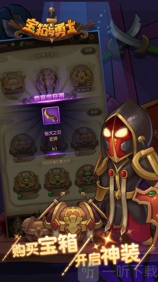 《宝箱与勇士》是一款极具休闲感的放置类手机游戏。玩家能轻松开启无穷无尽的冒险之旅,游戏内多种多样的特色玩法总能带来新鲜感。其整体操作十分简单,采用竖屏设计,玩家仅需点击就能完成各类任务。即便离线,也会收获大量武器和装备,时刻都有收益。