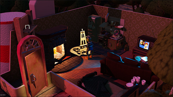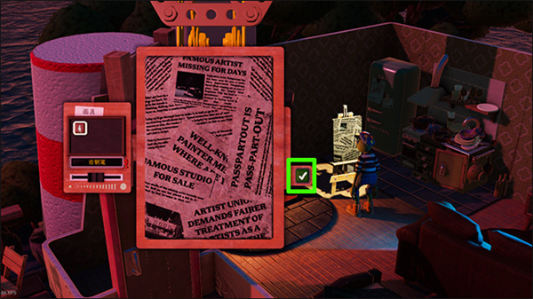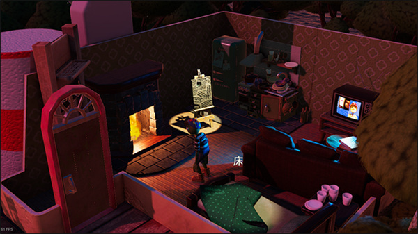 2、在这里玩家可以和房间内的物体互动,可以互动的有画架(进入主线)、床、电视等;