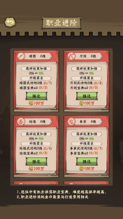 注:职业进阶所需消耗的金币数量与打造费用有关。少侠在主线闯关时,闯关进度越高,获得的金币数量就越多,相应地,职业进阶所消耗的金币数也会随之升高。产出与消耗成正比,因此少侠无需纠结何时进行升级,根据自身剩余金币数量,选择性地进行升级即可。