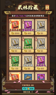 ②中后期:元宝在抽取秘籍/宠物之余,可优先在【武林珍藏】中兑换英雄碎片及职业宝典,后期英雄星级和职业进阶将会更有助于诸位少侠顺利闯关。