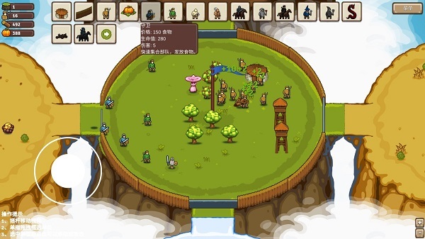 5、进入游戏后,玩家可在底部的建筑栏中,选择不同类型的建筑,栏中还包含各种兵种。点击即可了解生命值、招收价格以及伤害等所有信息。