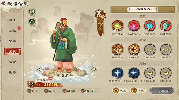 1、武将升级与升星就不必多说了,疯狂点升级和突破按钮!