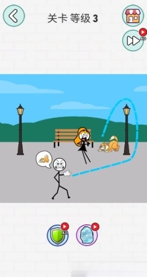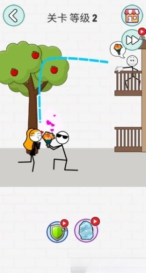 1.进入游戏后,你可以看到火柴人的目标是女士,于是点击画线就能成功。