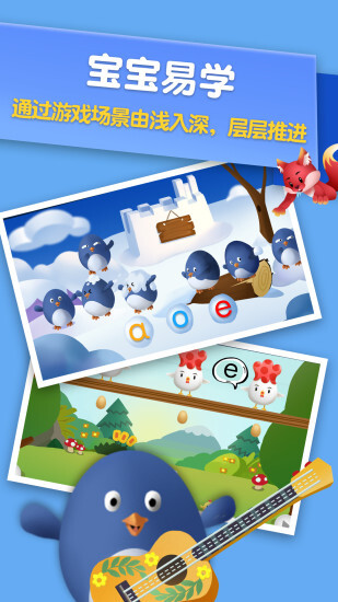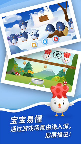 「宝宝易学」借助游戏场景的变化以及偶像载体的进化模式,以由浅入深、层层推进的方式开展课程学习。