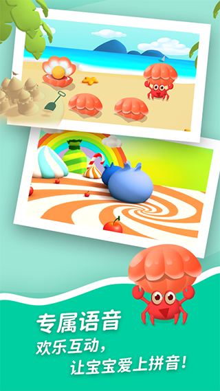 「宝宝爱学」围绕故事城堡这一主线,融入丰富且生动的教学游戏,助力宝宝爱上拼音!