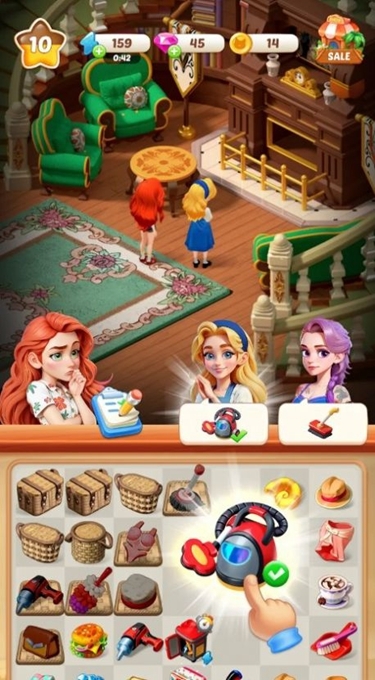 在这款游戏里,玩家得借助消除类玩法来合成道具。具体来说,得把两个一模一样的道具组合在一起,这样才能得到全新的道具。