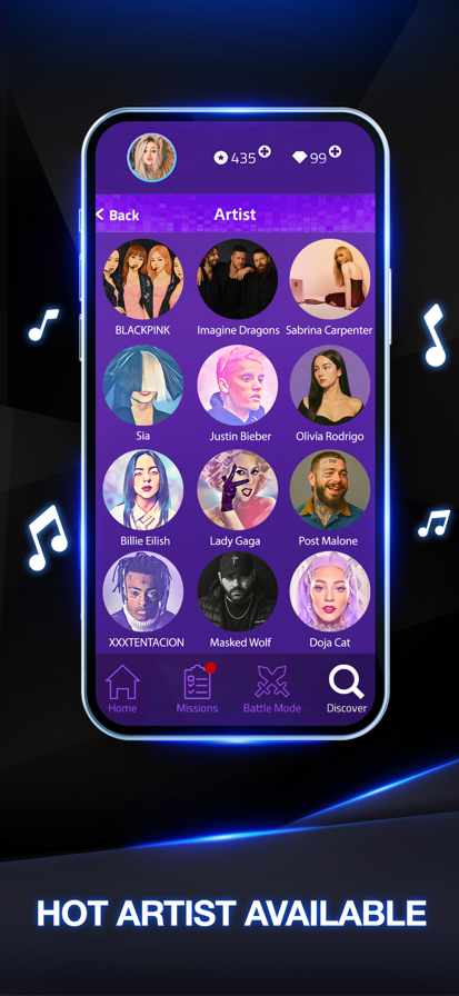 2、每天都会不断更新歌曲,其难度都不同,可以灵活选择挑战的。