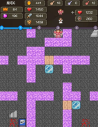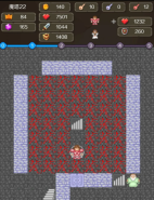 2、密室2(精灵之泉):魔塔22层有一块暗熔岩,堵门怪物的属性数值很高(攻击1024、防御789),这里也是获取寒冰的地方,记得携带任意门道具过来破冰。
