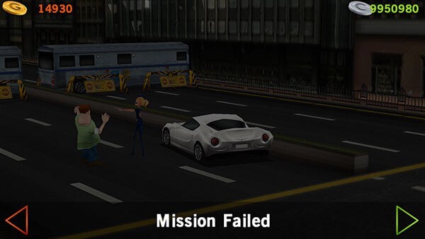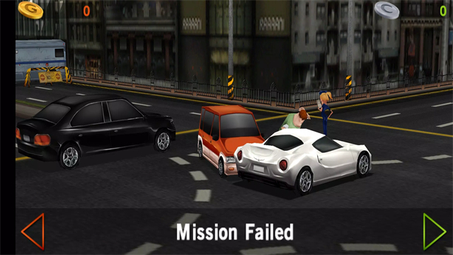 9、要是没能及时把方向盘回正,就很可能引发【交通事故】,游戏也会随之结束,此时点击左侧箭头可返回,点击右侧箭头则继续。