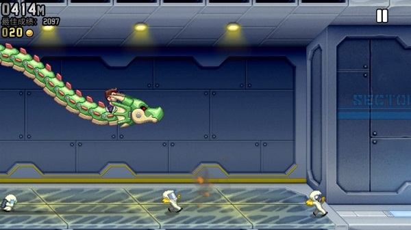 1、【横版跑酷】扮演一名熟练的火箭车特种部队飞行员,并参与水平跑酷挑战;