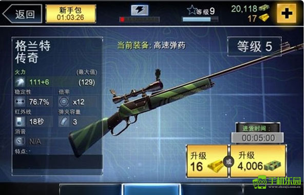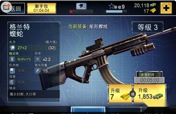 1、这关其实没什么难度,按照提示升级步枪就行,不用特意升级红外线;升级顺序优先选杀伤力,接着是稳定性,然后再考虑瞄准镜,这样通关会很轻松,要是缺钱就去打挑战赛赚点。