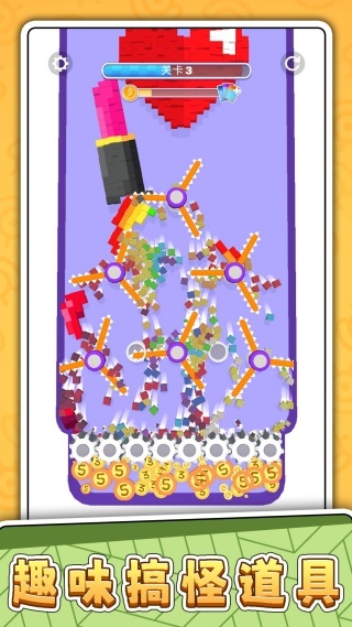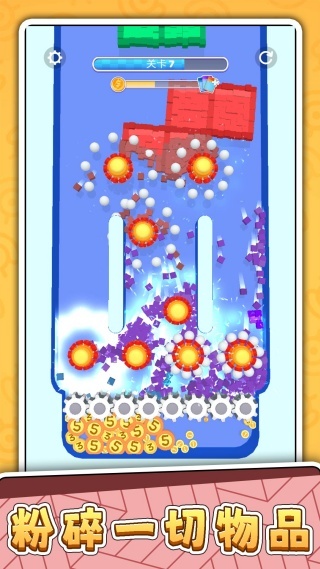 1.这款游戏运用了色彩明快的复古像素风格画面,方块破碎与金币掉落的特效都洋溢着轻松有趣的氛围。