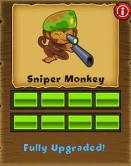 狙击手猴(Sniper Monkey)是拥有全局视野的冷静猎手,不受距离约束,一击便能贯穿多层气球。它的出手速度虽稍慢,可每一发都沉稳且极具威力,特别适合定点清除那些高威胁目标。