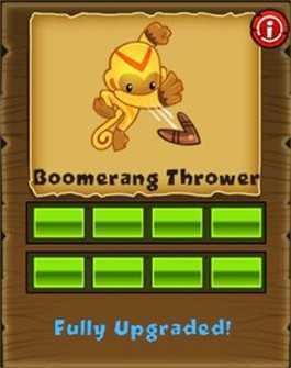 回旋镖猴(Boomerang Thrower)凭借弧线轨迹跳出常规攻击逻辑的框架,乍看之下平平无奇,内里却藏着丰富变化。它的回旋路径天生带有溅射特性,第一段飞行轨迹就能同时击中三只气球。