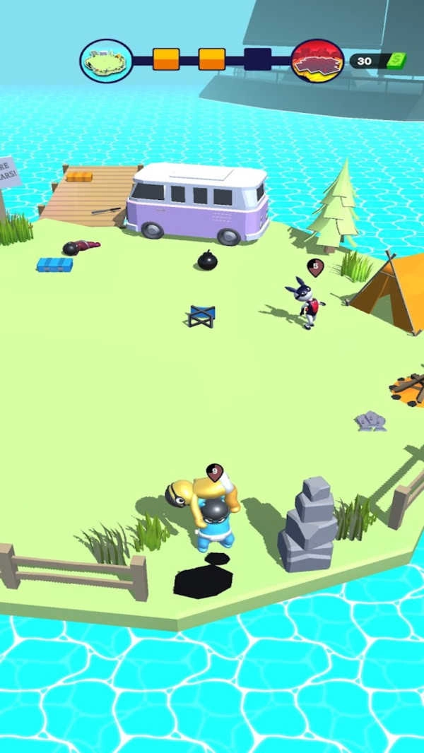 魔性有趣的动作竞技类游戏,游戏中玩家需要将所有的对手都扔出场地。