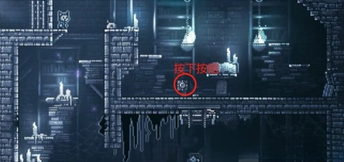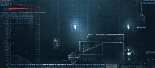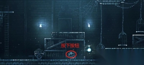7.流浪者视角。按下黑色怪物左边的按钮,3个铁笼升上去,爬上铁笼往右走,然后爬最右边的梯子上去。
