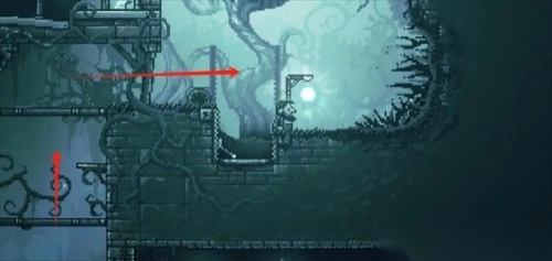 4.往右走,砍断挡路的藤蔓,继续往右,进入城堡后往右下的火盆方向走下去。