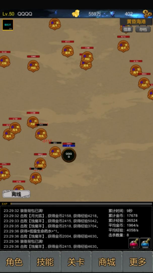 3、技能关卡可以任意探索,商城中购买不同的装备强化作战
