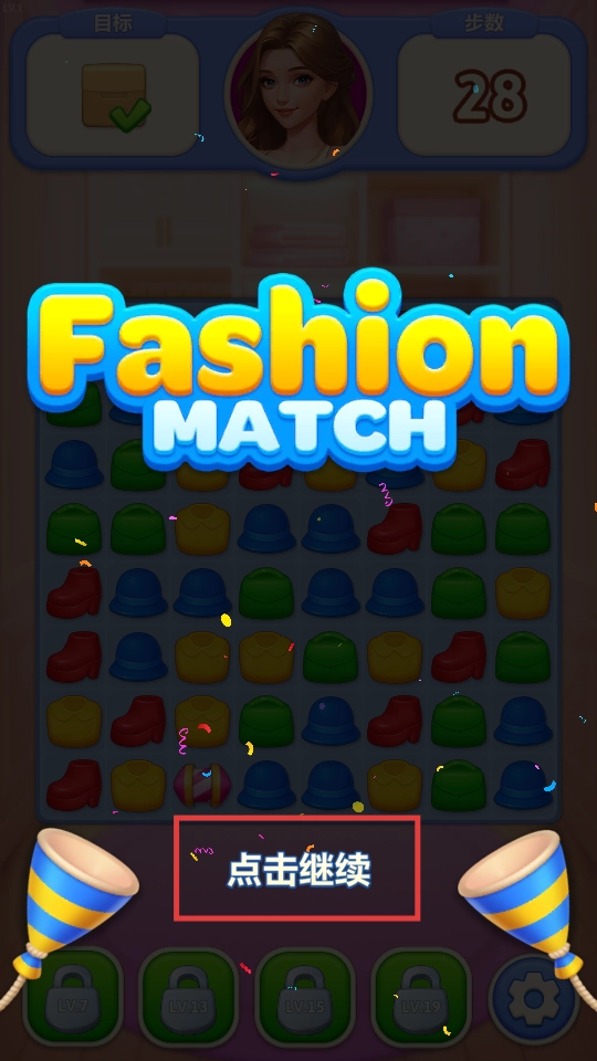 4、关卡完成后点击【点击继续】,可进入下一关或领取奖励,持续推进游戏获取更多奖励。