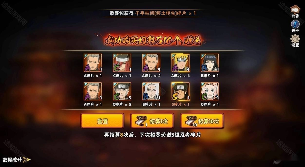 3、或者也可以点击招募10次,就能够进行十次招募