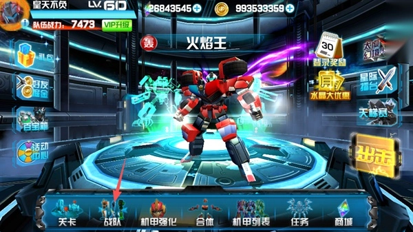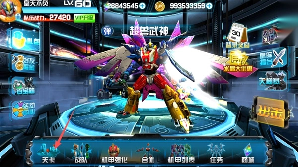 2、升级机甲等级,从不同的卡池中抽取定位的机甲,阵容选择也有更多变化。