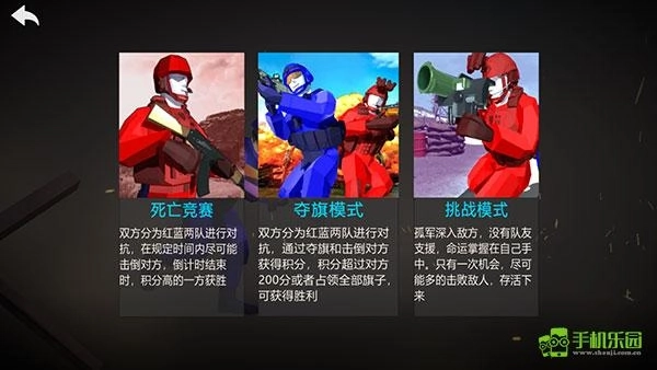 4、四种游戏模式:旗帜捕捉,无休止的竞争,敌人在后面,自定义模式。